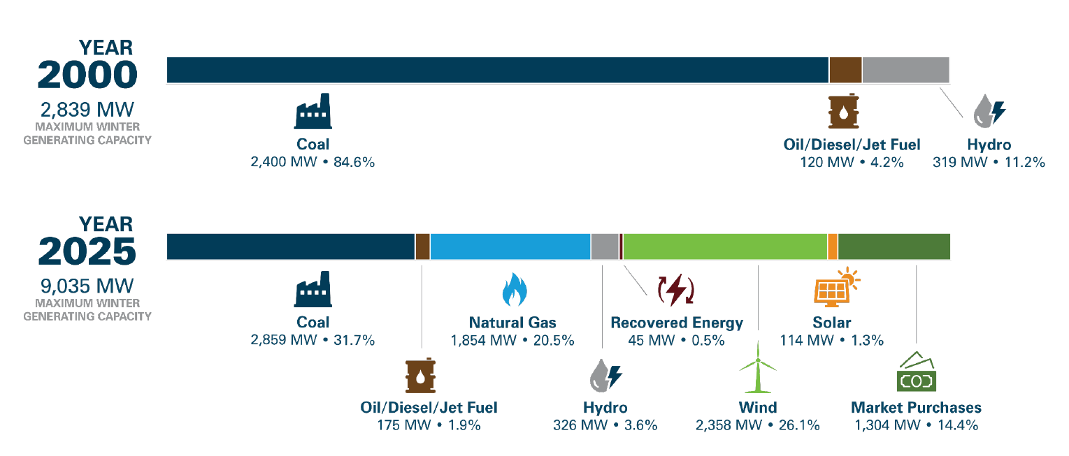- Generating capacity chart indicates only generation owned by Basin Electric or purchased power longer than three years